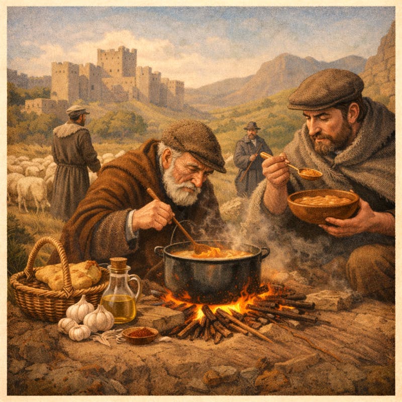 Castilian shepherds, who spent long days in the field tending their flocks, popularised this dish due to its ease of preparation, its ability to combat winter cold, and its restorative properties. For centuries, it was the traditional breakfast for workers before starting their hard-working days, and it was also served to the sick and convalescent for its supposed healing properties against colds and digestive problems.